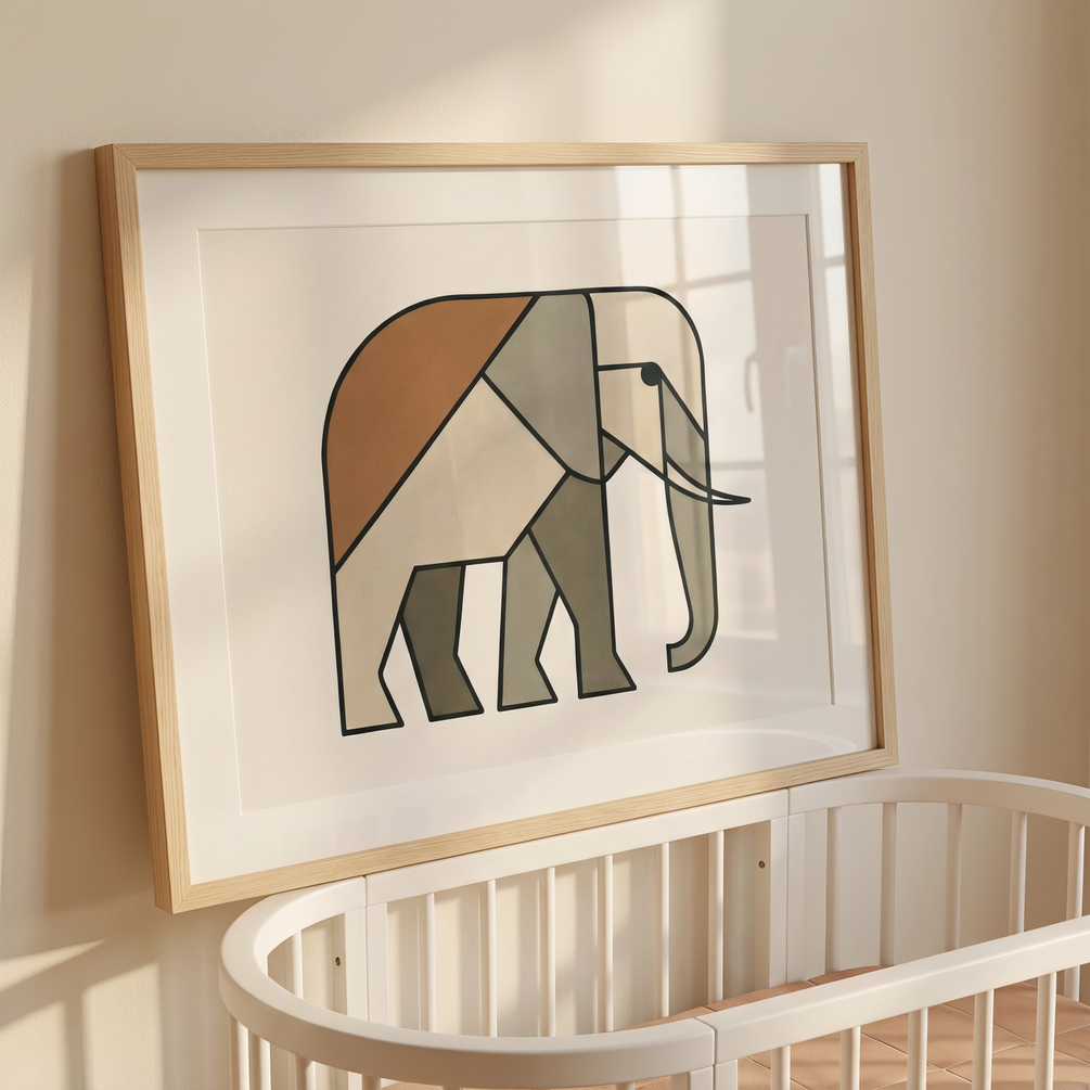 2. The Geometric Elephant: A serene and majestic piece, perfect for creating a calm atmosphere.