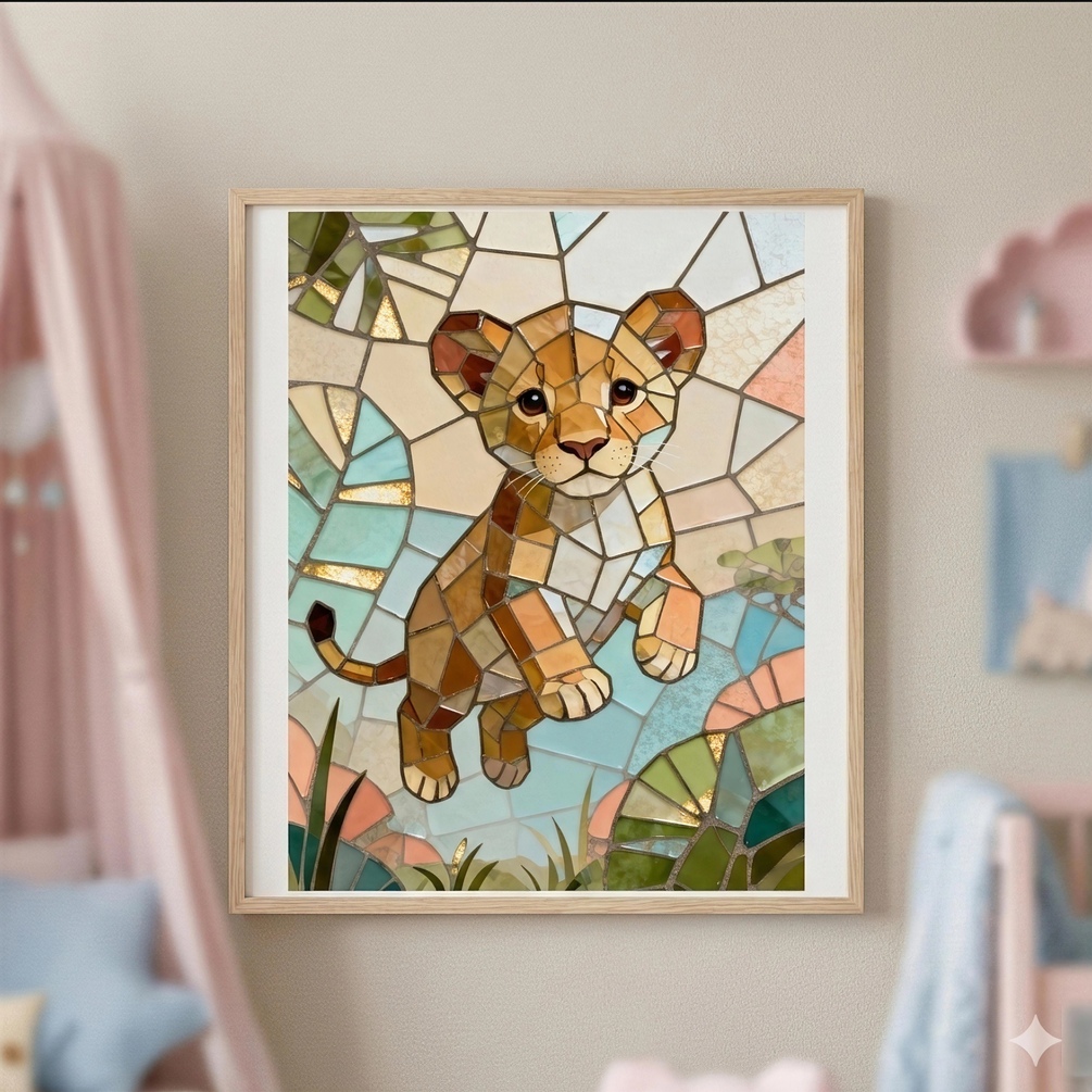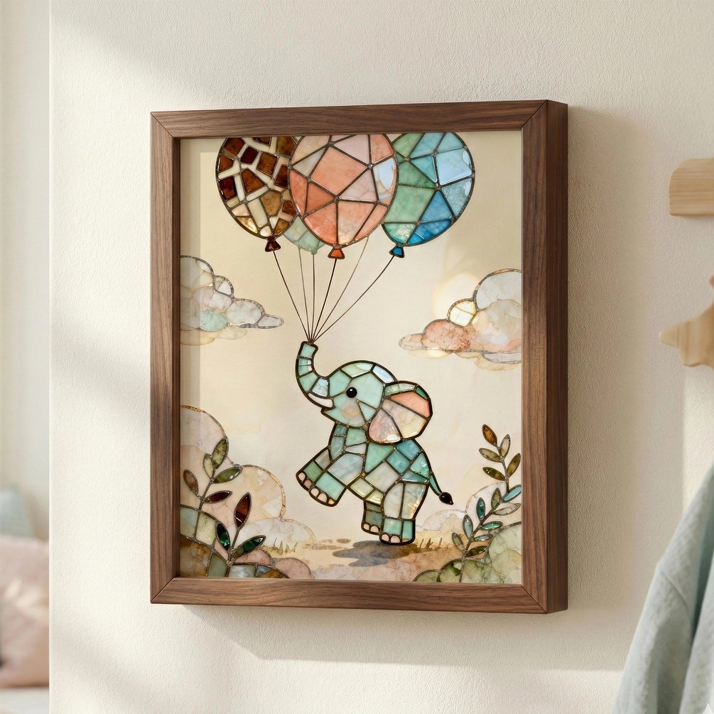 Bring the magic of the Savannah into your home with a radiant, contemporary twist. Unlike standard nursery watercolors, these 16k Ultra-High Resolution digital artworks combine the timeless beauty of stained glass with the playful charm of safari animals. Featuring a majestic Lion, a gentle Elephant, and a towering Giraffe, this set is designed to be the centerpiece of a modern, gender-neutral nursery.