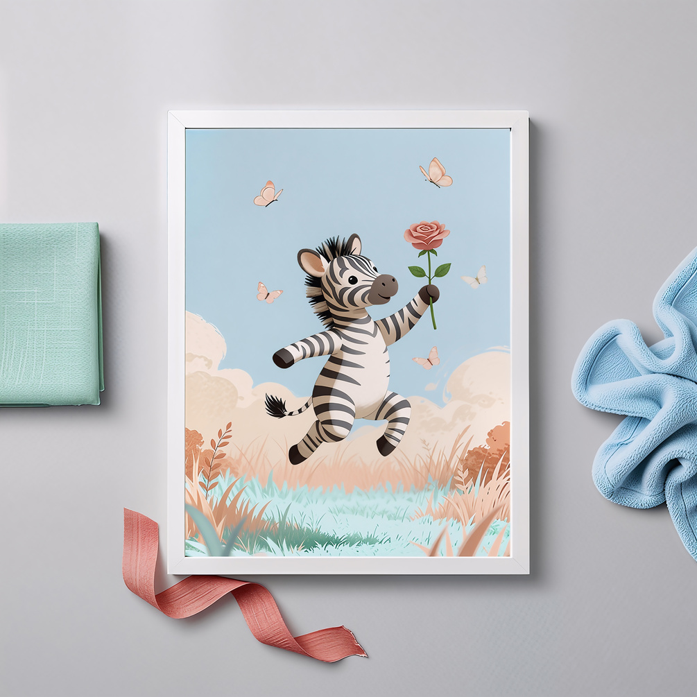 Transform your little one's space into a haven of gentle wonder with our best-selling 4-piece Whimsical Pastel Zebra Collection. Designed for the modern, discerning parent, this set captures the magic of childhood with four unique, heartwarming scenes featuring our adorable zebra family.